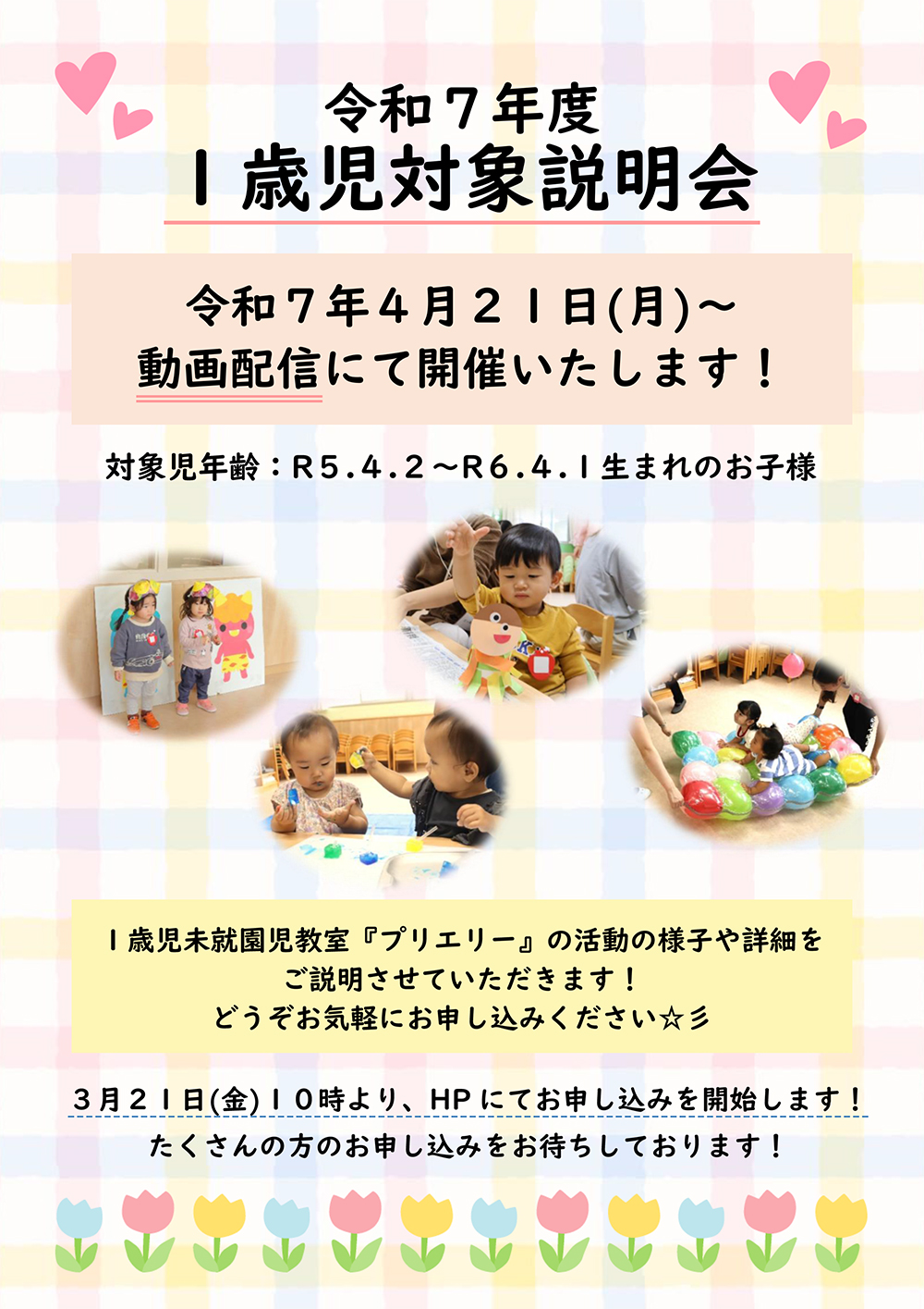 『令和7年度1歳児対象説明会』お申込みの方は下記フォームより情報を入力して送信ボタンを押してください。