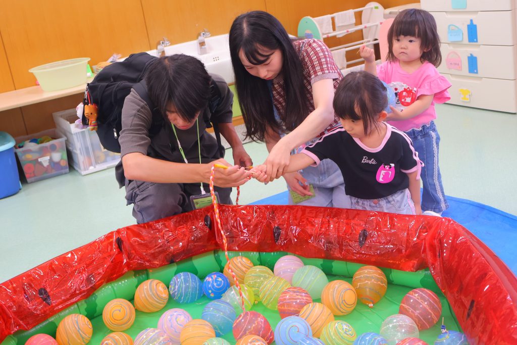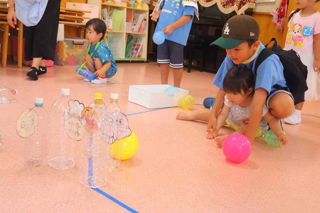 縁日コーナーでは、ヨーヨー釣りやボーリングに挑戦!!上手に取れるかな~?🎣🟠