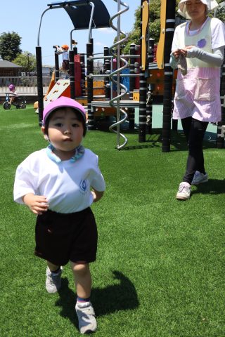滑り台を滑ったり、走ったりしてみんなで元気よく遊びました😊
