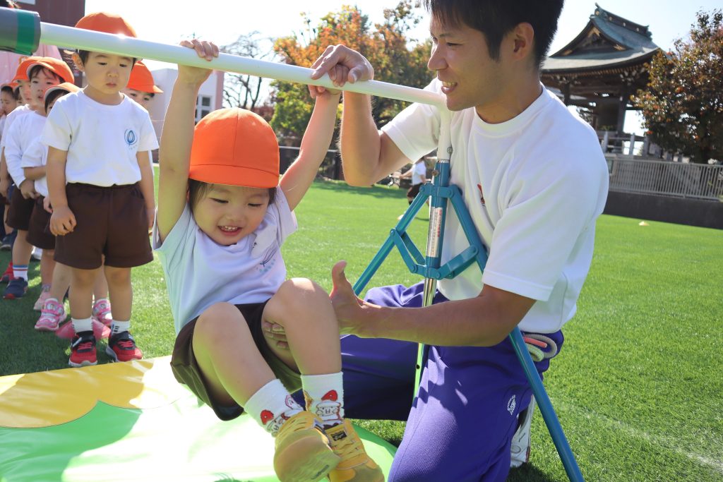 「やってみよう」と繰り返し挑戦する中で、少しずつ腕の力もついてきています。足ぬき回りにも挑戦し始めています!😲