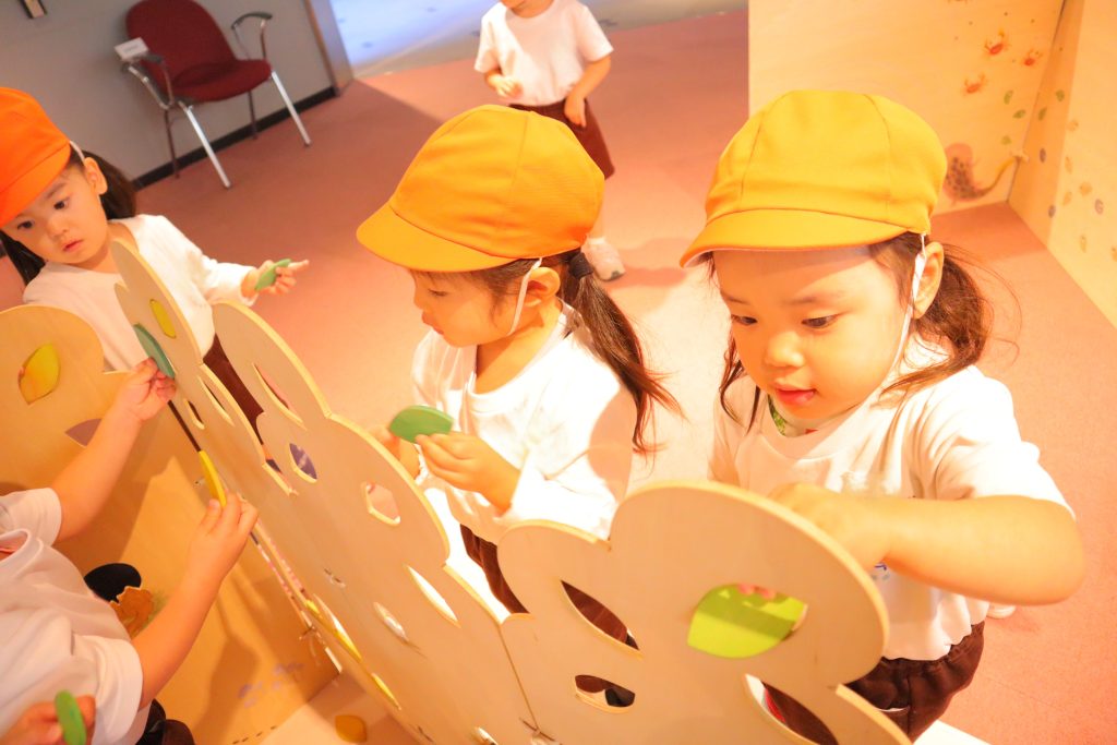 「先生見て!」と担任に見せに来てくれたり、葉っぱの形をした型はめに夢中になったりしてお友だちと木のおもちゃを楽しんでいました😊🎶