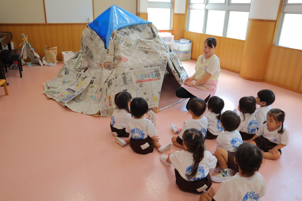 先生と、お兄さん・お姉さんたちが作ったテントに遊びに行かせてもらいました🎪✨