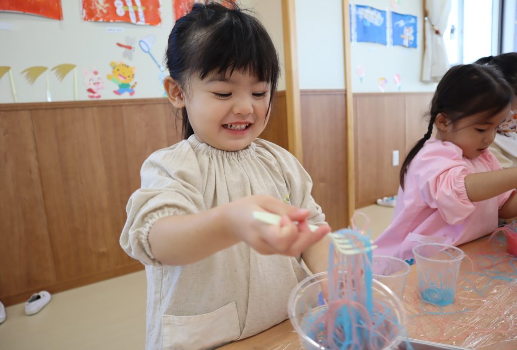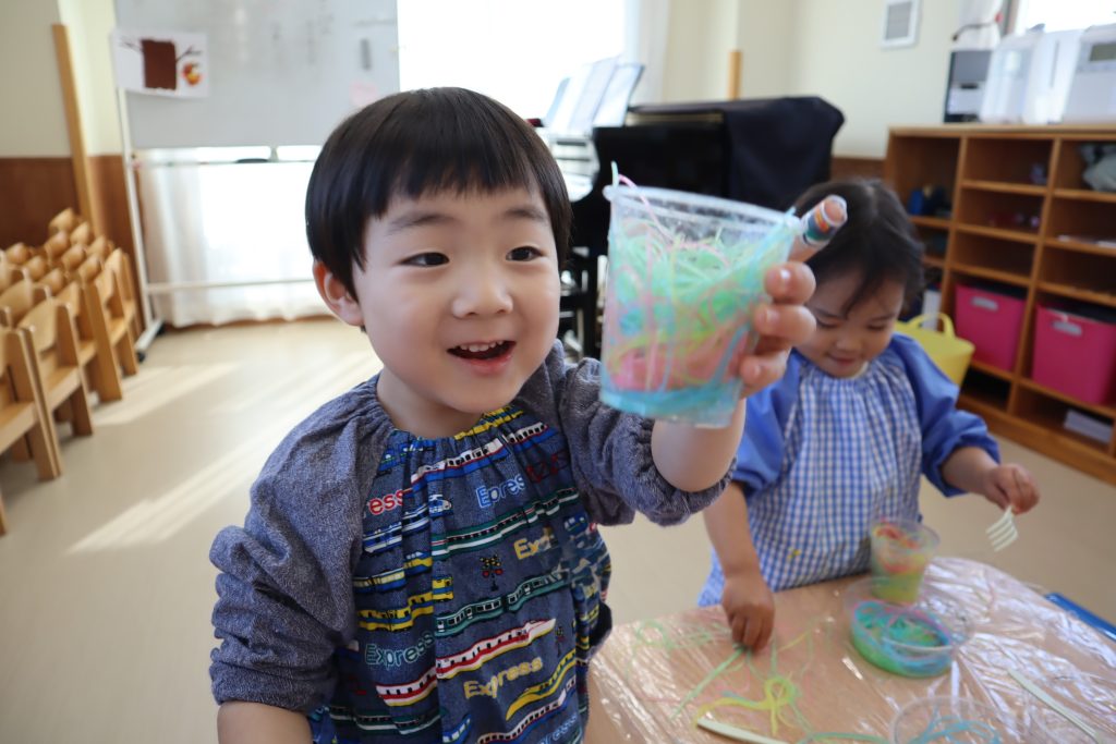 お気に入りの一色だけを山盛り入れたり、いろんな色を少しずつ入れたりみんな夢中になって遊んでいました!!