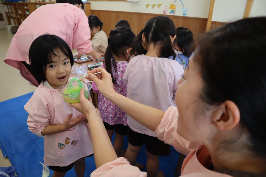 お気に入りの一色だけを山盛り入れたり、いろんな色を少しずつ入れたりみんな夢中になって遊んでいました!!