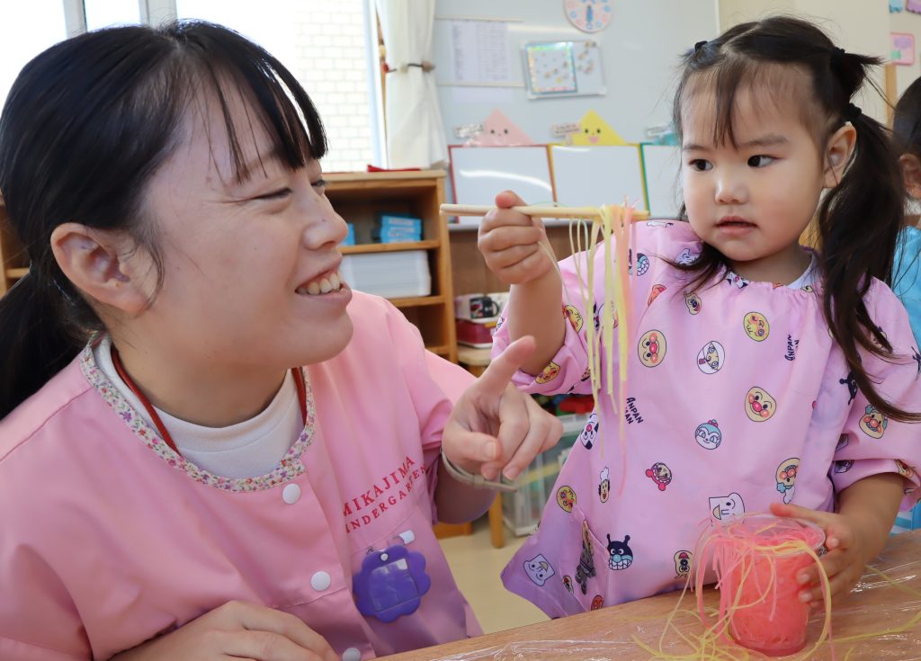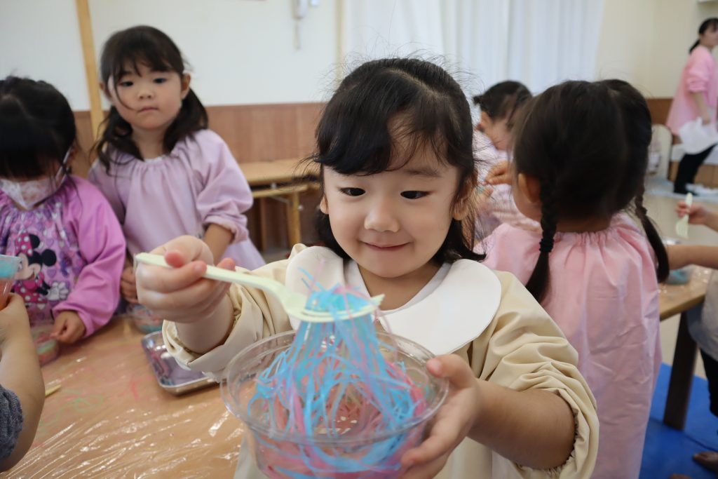 お友だちや先生のお口に「あ~ん😸」と春雨を運んであげる姿も💕