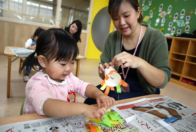 | 内 容 | 『秋の制作』 のりやテープを使用して秋の制作を行います。何を作るか楽しみにしていてください。 その後、園内施設またはお外で遊んで終了となります。 |