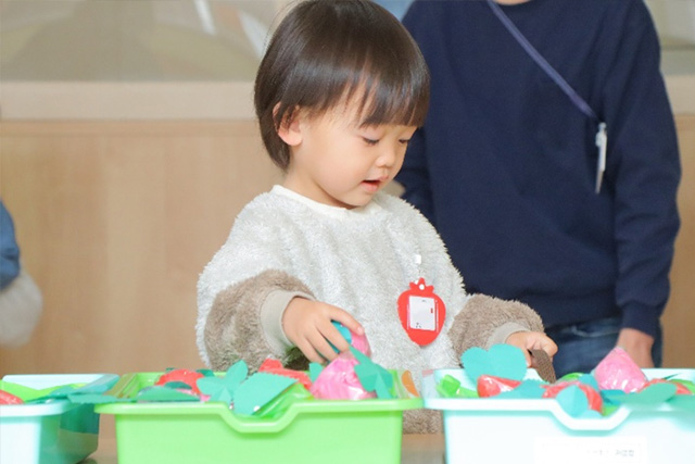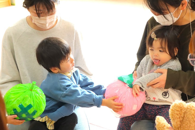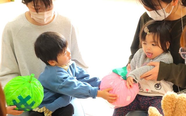 お友だちと一緒に、集団あそびを行います!保護者の方も一緒にゆったりと進めていきますので、安心してご参加ください。